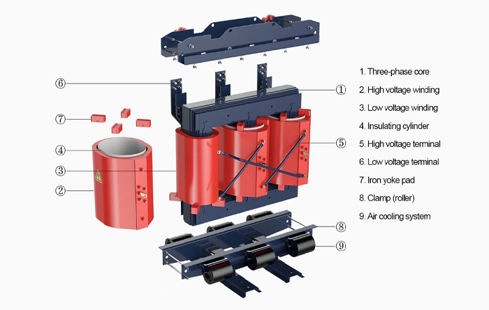 Resin insulation eliminates the need for oil, reducing maintenance. It can operate reliably in 100% humidity without pre-drying.